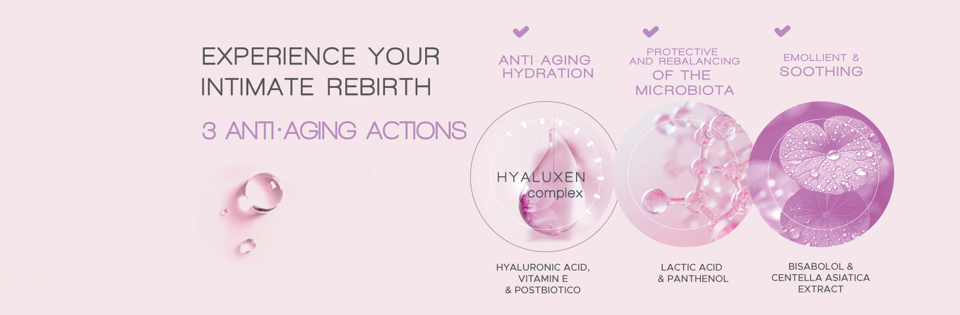 Uuenduslik hooldusvahend, mis on mõeldud intiimpiirkonna väliste limaskestade niisutamiseks ning toonuse ja elastsuse taastamiseks, imiteerides intiimpiirkonna loomulikku libestust. Sisaldab hüaluroonhappe, E-vitamiini ja ektoiini baasil valmistatud Hyaluxen-kompleksi, mis avaldab koostoimes bisabolooli ja Centella ekstraktiga vananemisvastast ja rahustavat toimet, leevendades vulva kuivust ja atroofiat. Piimhapet ja pantenooli sisaldav toode leevendab välise intiimpiirkonna ebamugavustunnet (näiteks stressist või pikaajalisest hügieenisidemete kasutamisest tingitud põletustunne ja kontaktärritus), ning kaitseb seda. Seda võib kasutada ka seksuaalvahekorra ajal ja perineumi masseerimiseks.