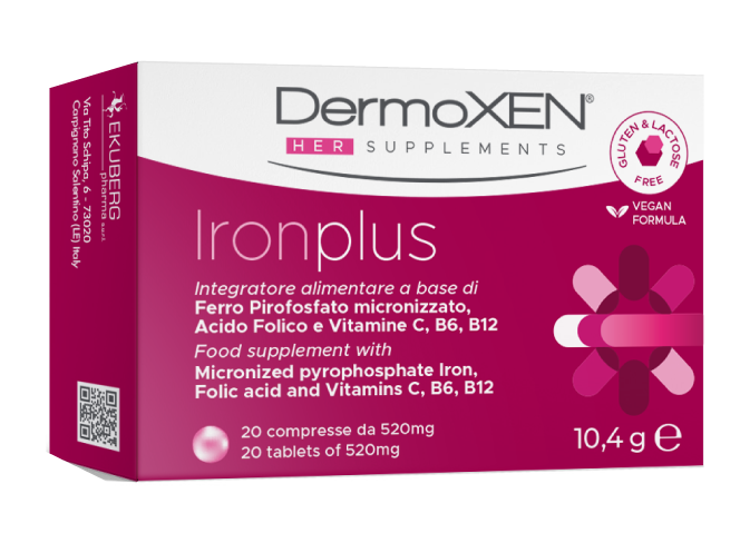 DermoXEN Ironplus toidulisand sisaldab unikaalset hästi omastatavat mikroniseeritud raudpürofosfaati, foolhapet ning C-, B6– ja B12-vitamiine. See on soovitatav rauapuuduse korral ja toitumise lisana.